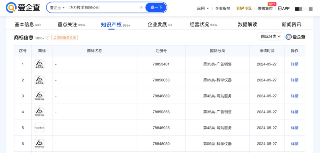 网科技讯(作者/陈和林) 6月18日,据爱企查APP显示,近日,华为技术有限公司申请注册“华为云山”“YUNSHAN”图形商标,国际分类包括科学仪器、网站服务、广告销售,当前商标状态为“等待实质审查”,尚不清楚该商标将作何用途。